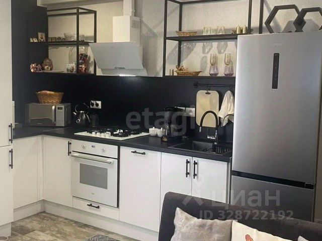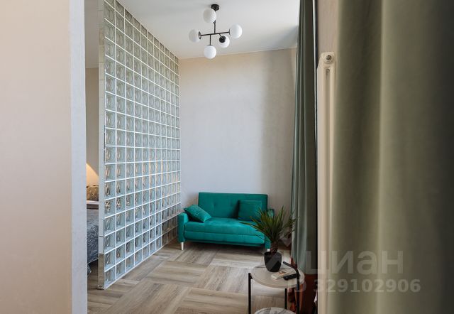 Площадь квартиры составляет 46,9 квадратных метров, кухня-гостиная 20 кв.м с выходом на балкон, который можно обустроить, как зону отдыха(шезлонг, кресла, кофейный столик) и отдельная спальня с французским балконом, что обеспечивает комфортное проживание для одного человека или небольшой семьи.
