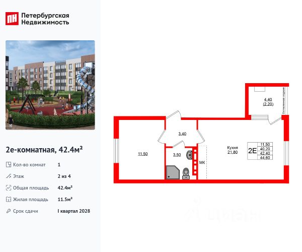 Продается просторная 1-комнатная квартира от застройщика в жилом комплексе "Кроны и Волны" в Зеленоградск. Удобная, классическая, функциональная европланировка, большая кухня-гостиная 20.2 м², вместительная прихожая 2.9 м². Общая площадь квартиры - 39.7 м², жилая 10.9 м², высота потолка 2.7 м. Квартира продается с отделкой "Серый ключ КиВ". Что особенного в ЖК "Кроны и Волны"? • Современный малоэтажный жилой комплекс • Дизайнерские детские площадки, зоны для спорта и активного отдыха, велодорожки • Помещения для колясок и велосипедов в каждой парадной • Неповторимые лесные пейзажи в непосредственной близости к побережью Балтийского моря • Концепция "Двор без машин"