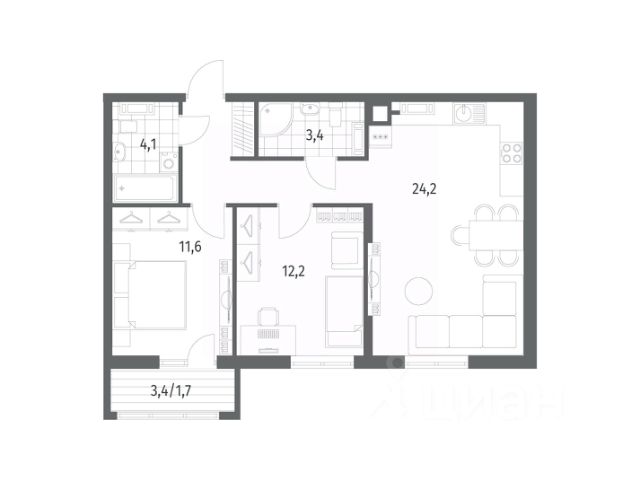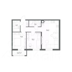 Продается квартира площадью 64.7 м² на 1 этаже 1 секции в River Park от компании ГК "ТРЕСТ". Площадь кухни 24.5 м².
