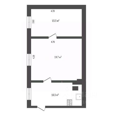 Площадь: Общая 52,7 кв. м. (жилая 30,2 кв. м, кухня 10,7 кв. м).