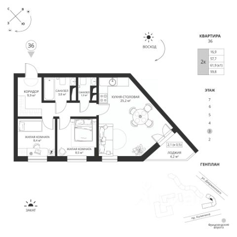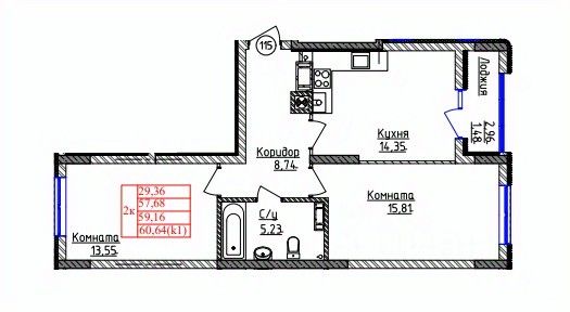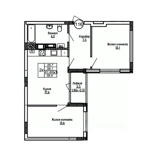 Купить квартиру 60 м2 в Калининграде