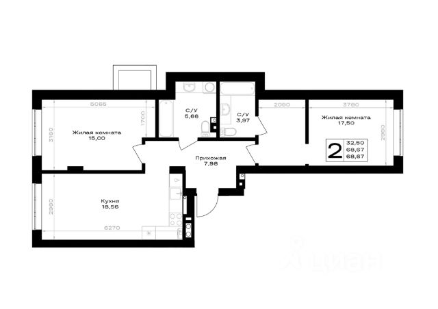 Квартира: 2 к 70,00 кв.м., 1 этаж в комплексе Включи, 1 очередь, корп.2, сдача: 4кв. , этажей: 7, адрес Гурьевск г., Героя России Катериничева ул., д. 2 корп 2, Застройщик: ССК.