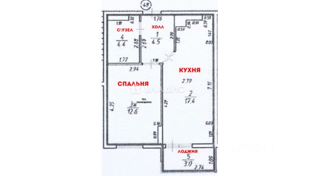 • Общая 50,5 м² (комнаты 17,1 и 14,1 м²)