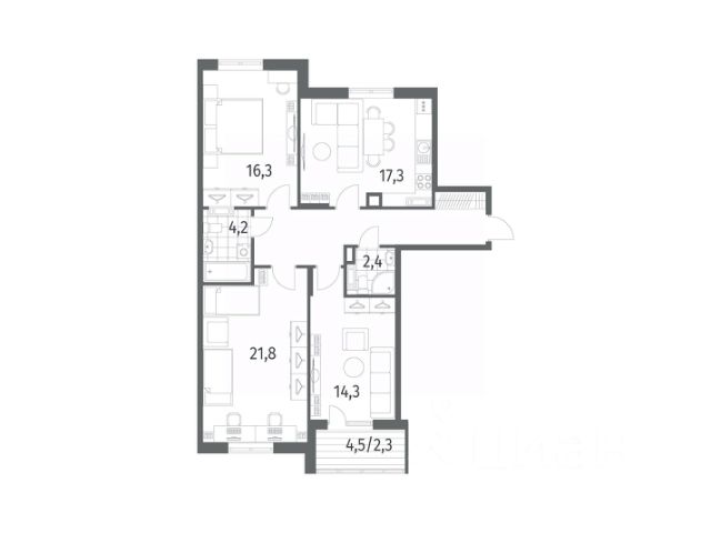 Продается квартира площадью 92.8 м² на 3 этаже 1 секции в River Park от компании ГК "ТРЕСТ". Площадь кухни 17.3 м².
