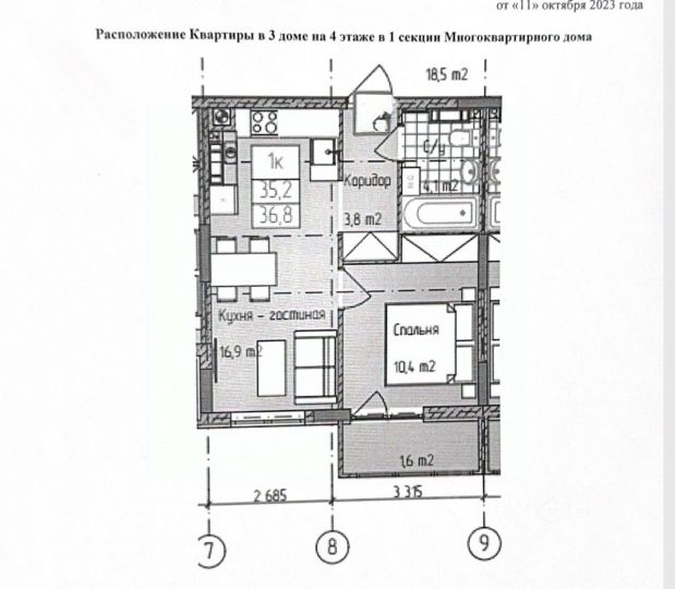 Продается квартира площадью 31.1 м² на 1 этаже 1 секции в River Park от компании ГК "ТРЕСТ". Площадь кухни 10.4 м².