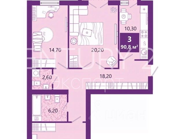 • Общая площадь: 52.8 м2 (без учета балкона 10.1 м2)