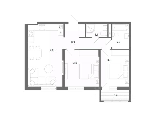 Отделка "белые стены":- стены подготовлены к финишной отделке,- армированная стяжка пола,- Надежная металлическая входная дверь и металлопластиковые окна,- Двухконтурный газовый котел фирмы Fondital