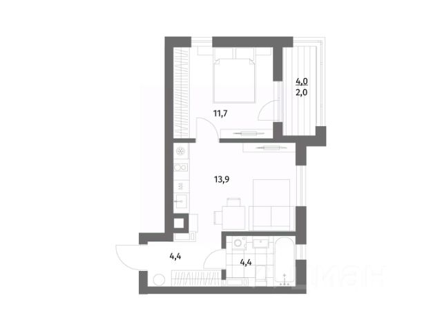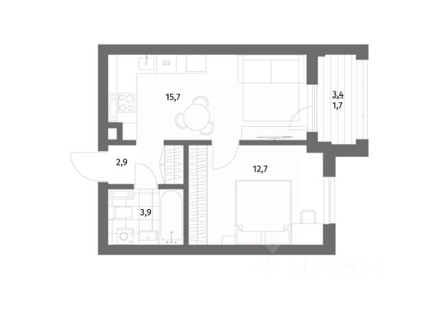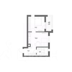 - комната — 11,6 кв.м;