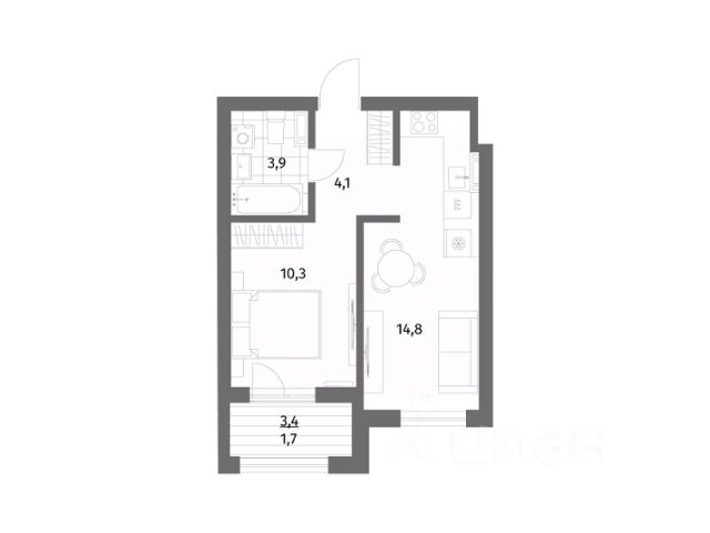 Общая площадь квартиры составляет 28,6 кв.м :