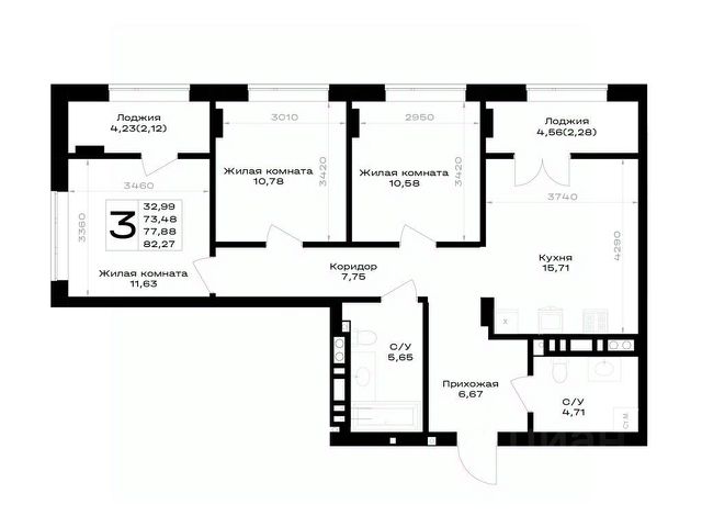 - кухня —7,1 кв.м;
