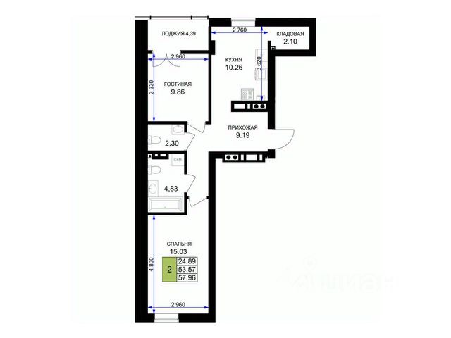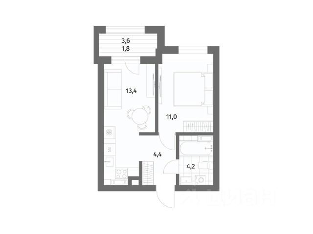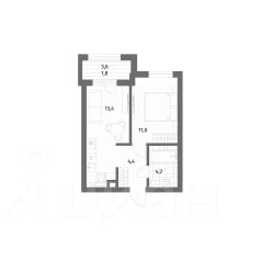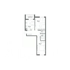 Общая площадь квартиры составляет 54,6 кв м: три комнаты - 13,3, 11,1 и 8,6 кв м, кухня 8,6 кв. м, холл 8,0 кв м, раздельный с/у, застеклённая лоджия 2,7 кв м.