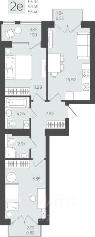 Общая площадь квартиры 43,3.м. (Площадь указана общая с лоджией без понижающего коэффициента), расположена в современном жилом комплексе, рядом с парковой зоной рядом с благоустроенным озером Шанхайское, в соседнем доме расположены пункты выдачи OZON и WB. Кухня 11,4 кв.м, лоджия 2,2 кв.м, комната: 15,7 кв.м, санузел - 6,5 кв.м (совмещенный), коридор 6,8 кв.м.