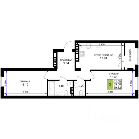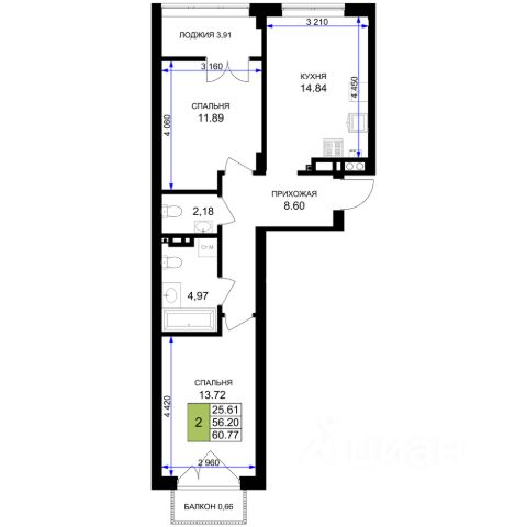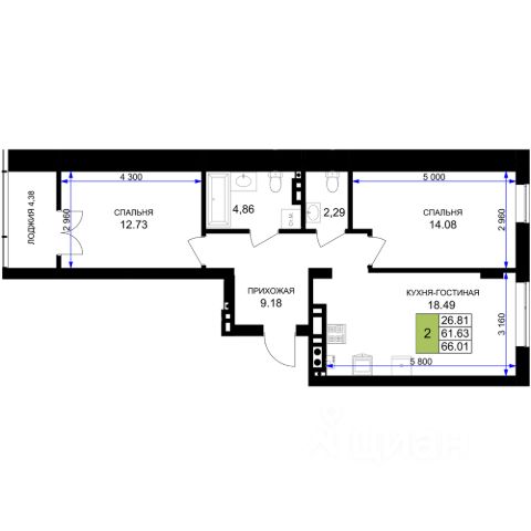+ балкон 3 м2 с лучшим вид на закат и город на юго-западную сторону.