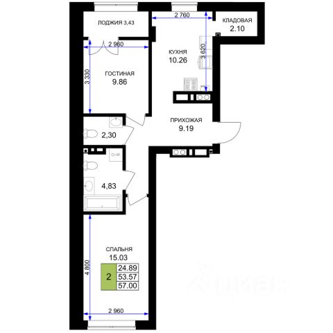 + кухня — 9.3м,