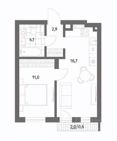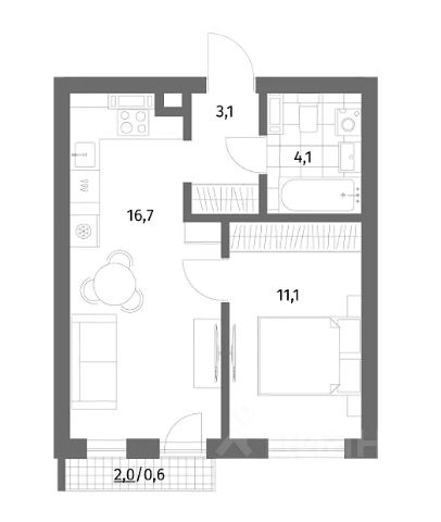 + комната 16,5м²;