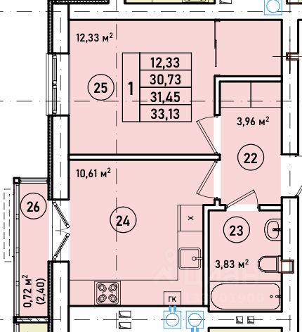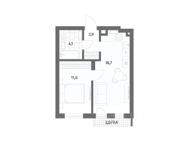+ Общая площадь: 34,4м²;