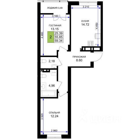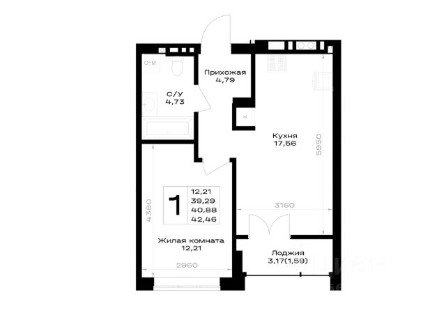 + балкон 3 м2 с лучшим вид на закат и город на юго-западную сторону.