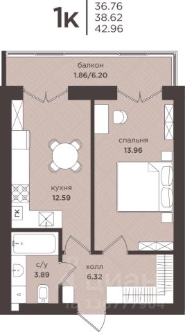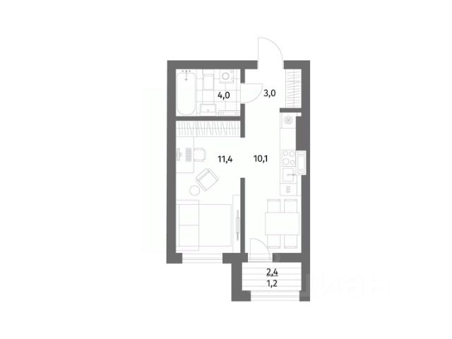 + Общая площадь: 34,4м²;