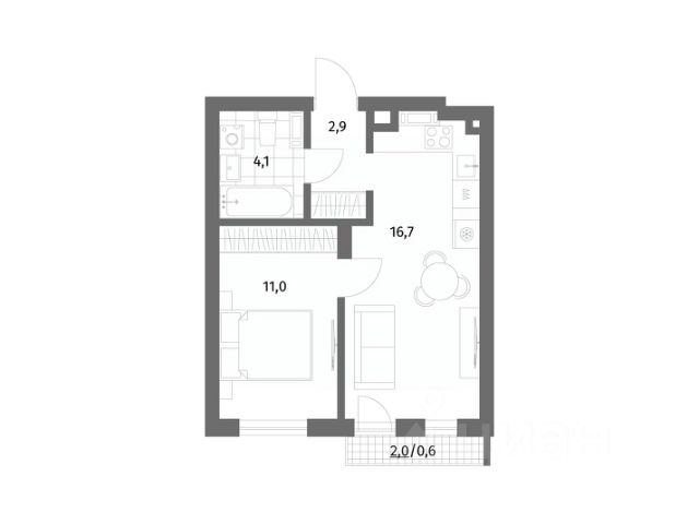 + комната 16,5м²;