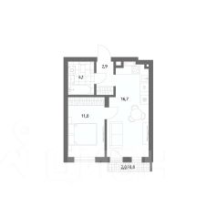 + Общая площадь 36м²;, комната 16,5м²; кухня 9,3, с/у совмещенный 3м.