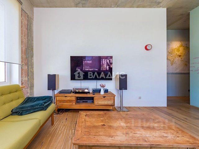 * Гостиная: зона отдыха с диваном-кроватью и Smart TV, панорамные окна