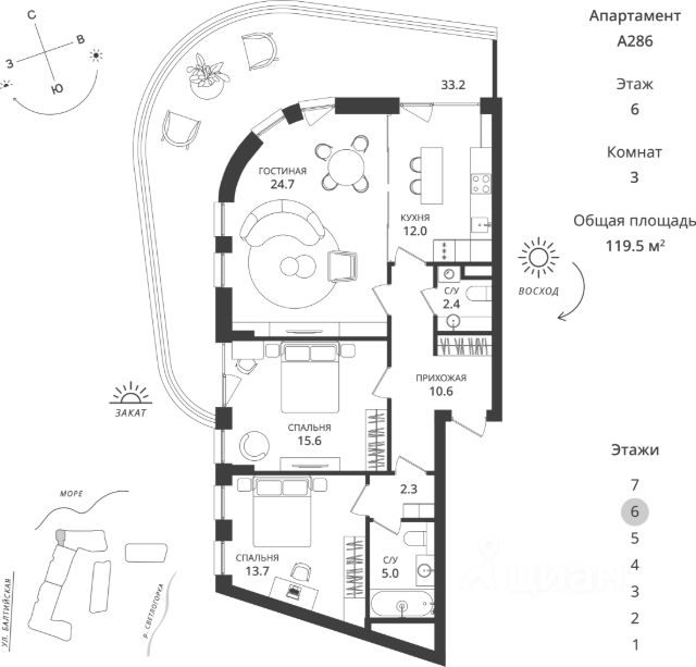 * В шаговой доступности: набережная, пляж, парк, санаторно-курортные зоны, культурные мероприятия, конференции и фестивали в Янтарь-Холл, спортивные объекты, SPA, рестораны, отели уровня 5 звёзд