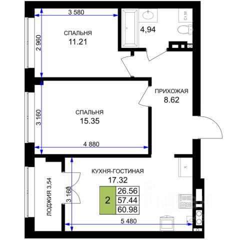 • ✅ Минимальная площадь: 35,8 м²