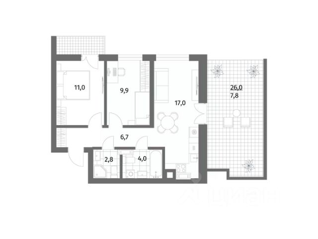 Однокомнатная квартира - это гармоничное сочетание современной планировки, естественного света и продуманной функциональности. Пространство легко зонируется на спальную и гостиную зоны, а просторная кухня с возможностью размещения полноценной обеденной группы становится центром домашнего уюта и встреч с близкими. Лоджия, выходящая из жилой зоны, расширяет полезную площадь: здесь можно организовать рабочий уголок, мини-оранжерею или уютное место для отдыха с чашкой кофе утром.