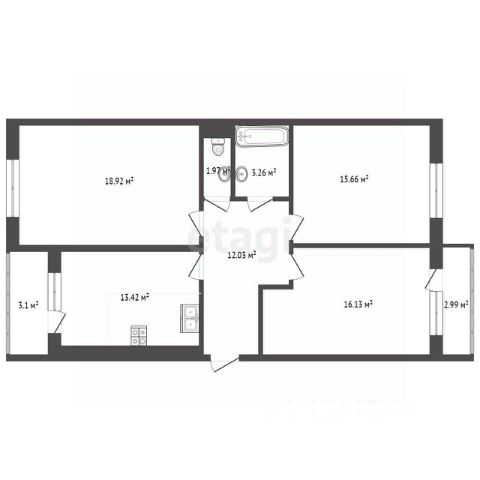• Просторные комнаты (18,3 м² и 15,9 м²)