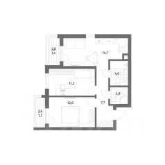Продается квартира площадью 55.7 м² на 3 этаже 1 секции в River Park от компании ГК "ТРЕСТ". Площадь кухни 14.7 м².