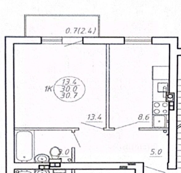 Общая площадь: 45,3 м². Жилая площадь: 30 м². Площадь кухни: 6,3 м².