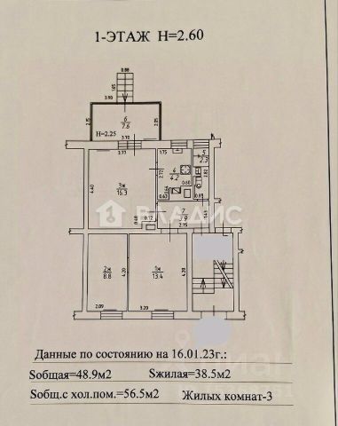 Общая площадь квартиры составляет 60 м2 и включает в себя: