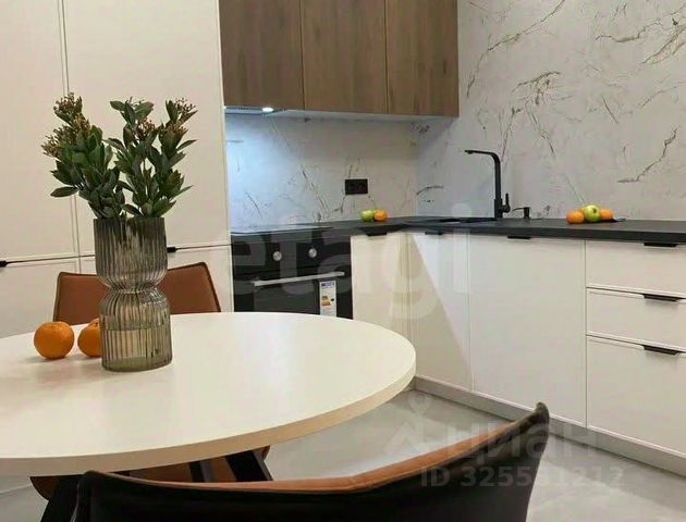Кухня со встроенным гарнитуром и техникой остается новым хозяевам в подарок. Кстати, кухня занимает просторные 12 кв.м и имеет выход на застекленный балкон площадью 3.4 кв.м.