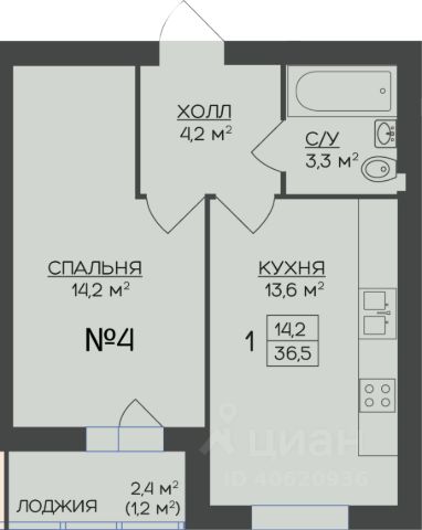 Жилая площадь 31.7 кв.м, кухня 22.4 кв.м.