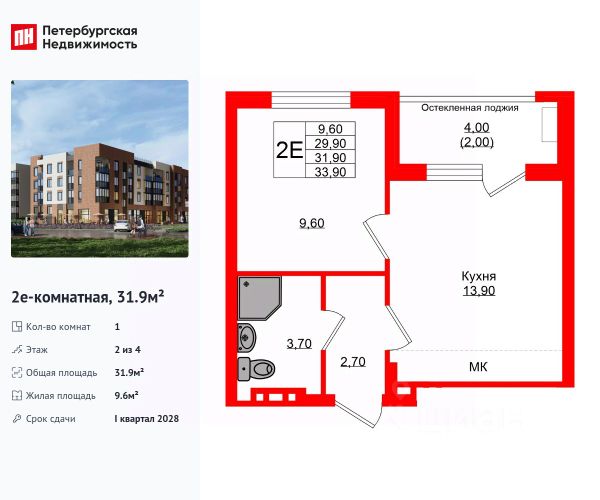 Окна квартиры на разные стороны дома, изолированные комнаты, просторная кухня, 2 лоджии!