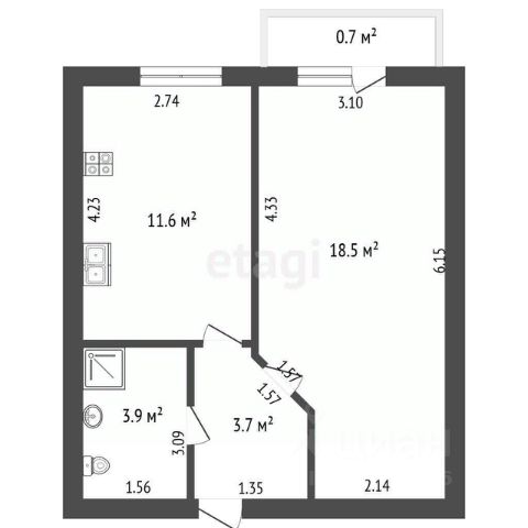 • кухня: 12 м2 с выыходом на остекленную лоджию 1.6 м2