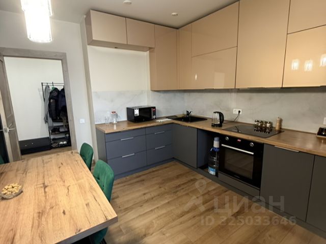 В квартире - кухня (12,4 кв.м.) с балконом (2 кв. м.), за счет дивана, она же может служить дополнительным спальным местом, когда приезжают родственники или друзья. Очень удобно.