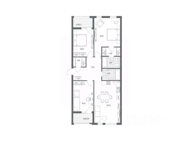 Продается квартира площадью 29.6 м² на 2 этаже 3 секции в Гагарина 30 от компании ГК "ТРЕСТ". Площадь кухни 9.3 м². Жилой комплекс комфорт-класса "Гагарина 30" расположен в Ленинградском районе Калининграда на улице Юрия Гагарина. Жилой комплекс включает в себя три корпуса высотой 9-18 этажей. Срок сдачи намечен на 1 квартал 2028 года. Жилой комплекс расположен в географическом центре города Калининград. Он знаменит Музеем янтаря, Королевскими воротами, Верхним и Нижним прудами, районами Альтштадт и Лебенихт. Из жилого квартала за 10 минут можно добраться до парков Тихий и Кальтхёфер. В жилом комплексе 457 квартир, из них 55% двух- и трёхкомнатные. Доступны варианты с просторными кухнями-гостиными, мастер-спальнями и кладовыми. На первых этажах расположены квартиры с приватными открытыми террасами. На верхних этажах лоджии с холодным остеклением, панорамными и увеличенными окнами. Высота потолков первого и последнего этажей - 3 м (кроме первого корпуса), остальных 2,72 м. Интерьеры МОП-ов выполнены в минималистичном стиле с контрастными, дополняющими друг друга материалами. Благодаря использованию светлых оттенков, природных текстур и декоративного освещения, пространство имеет большое количество света. В лифт-холле предусмотрена зона ожидания с мягкой мебелью. Почтовые ящики вынесены в тамбур, а рядом со стойкой домофона предусмотрена консоль для сумок. Дизайн-проект разработан студией Right design. Для удобства автомобилистов созданы подземные паркинги: на 125 машиномест и кладовые помещения. В паркинг можно будет спуститься на лифте комфортно людям, безопасно автомобилям! Продается квартира на улице Юрия Гагарина в городе Калининград.