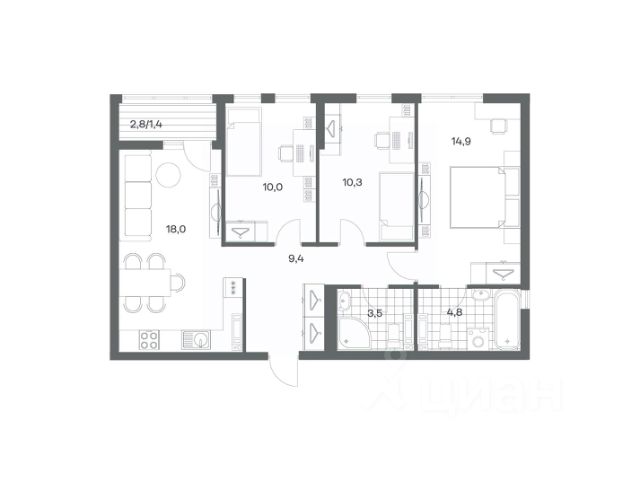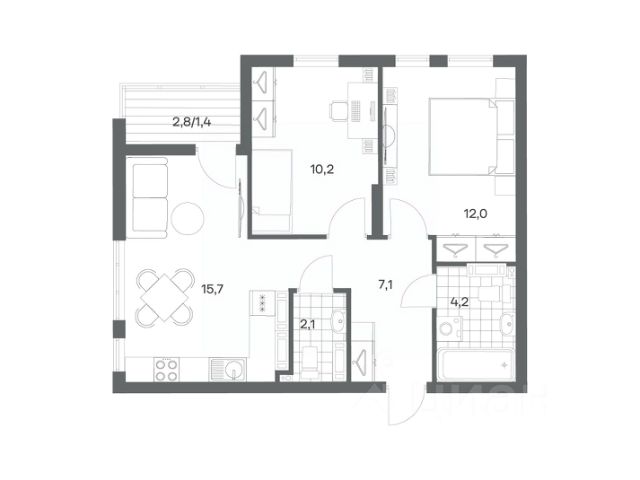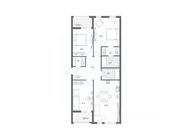 Продается квартира площадью 54.7 м² на 8 этаже 1 секции в Гагарина 30 от компании ГК "ТРЕСТ". Площадь кухни 19.1 м². Жилой комплекс комфорт-класса "Гагарина 30" расположен в Ленинградском районе Калининграда на улице Юрия Гагарина. Жилой комплекс включает в себя три корпуса высотой 9-18 этажей. Срок сдачи намечен на 1 квартал 2028 года. Жилой комплекс расположен в географическом центре города Калининград. Он знаменит Музеем янтаря, Королевскими воротами, Верхним и Нижним прудами, районами Альтштадт и Лебенихт. Из жилого квартала за 10 минут можно добраться до парков Тихий и Кальтхёфер. В жилом комплексе 457 квартир, из них 55% двух- и трёхкомнатные. Доступны варианты с просторными кухнями-гостиными, мастер-спальнями и кладовыми. На первых этажах расположены квартиры с приватными открытыми террасами. На верхних этажах лоджии с холодным остеклением, панорамными и увеличенными окнами. Высота потолков первого и последнего этажей - 3 м (кроме первого корпуса), остальных 2,72 м. Интерьеры МОП-ов выполнены в минималистичном стиле с контрастными, дополняющими друг друга материалами. Благодаря использованию светлых оттенков, природных текстур и декоративного освещения, пространство имеет большое количество света. В лифт-холле предусмотрена зона ожидания с мягкой мебелью. Почтовые ящики вынесены в тамбур, а рядом со стойкой домофона предусмотрена консоль для сумок. Дизайн-проект разработан студией Right design. Для удобства автомобилистов созданы подземные паркинги: на 125 машиномест и кладовые помещения. В паркинг можно будет спуститься на лифте комфортно людям, безопасно автомобилям! Продается квартира на улице Юрия Гагарина в городе Калининград.