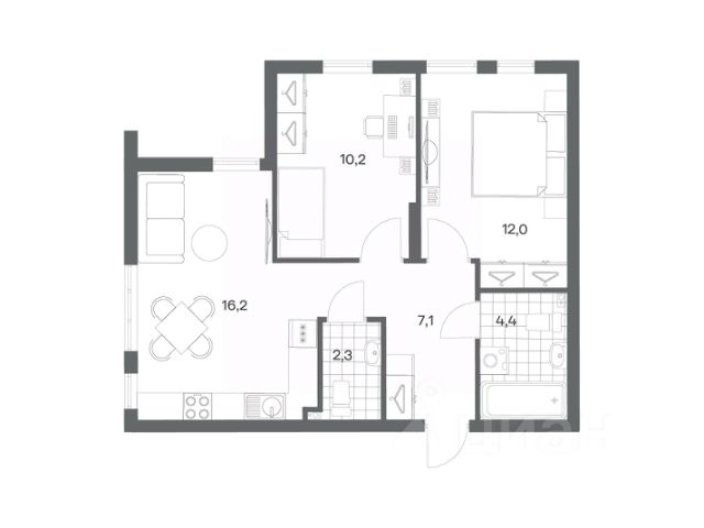 Продается квартира площадью 35.7 м² на 1 этаже 3 секции в Гагарина 30 от компании ГК "ТРЕСТ". Площадь кухни 14.2 м². Жилой комплекс комфорт-класса "Гагарина 30" расположен в Ленинградском районе Калининграда на улице Юрия Гагарина. Жилой комплекс включает в себя три корпуса высотой 9-18 этажей. Срок сдачи намечен на 1 квартал 2028 года. Жилой комплекс расположен в географическом центре города Калининград. Он знаменит Музеем янтаря, Королевскими воротами, Верхним и Нижним прудами, районами Альтштадт и Лебенихт. Из жилого квартала за 10 минут можно добраться до парков Тихий и Кальтхёфер. В жилом комплексе 457 квартир, из них 55% двух- и трёхкомнатные. Доступны варианты с просторными кухнями-гостиными, мастер-спальнями и кладовыми. На первых этажах расположены квартиры с приватными открытыми террасами. На верхних этажах лоджии с холодным остеклением, панорамными и увеличенными окнами. Высота потолков первого и последнего этажей - 3 м (кроме первого корпуса), остальных 2,72 м. Интерьеры МОП-ов выполнены в минималистичном стиле с контрастными, дополняющими друг друга материалами. Благодаря использованию светлых оттенков, природных текстур и декоративного освещения, пространство имеет большое количество света. В лифт-холле предусмотрена зона ожидания с мягкой мебелью. Почтовые ящики вынесены в тамбур, а рядом со стойкой домофона предусмотрена консоль для сумок. Дизайн-проект разработан студией Right design. Для удобства автомобилистов созданы подземные паркинги: на 125 машиномест и кладовые помещения. В паркинг можно будет спуститься на лифте комфортно людям, безопасно автомобилям! Продается квартира на улице Юрия Гагарина в городе Калининград.