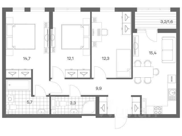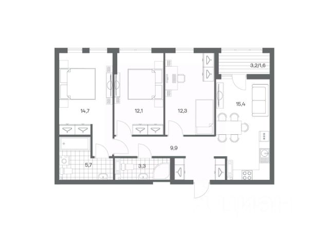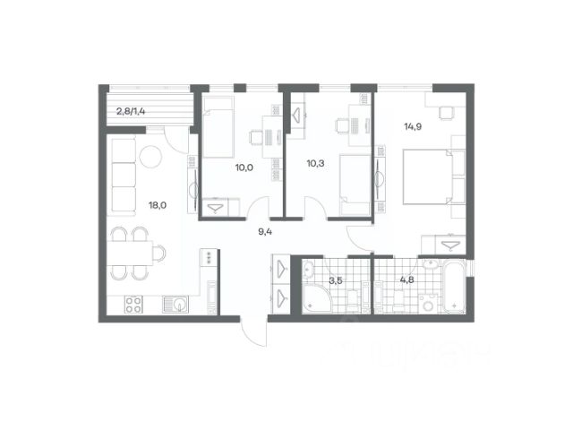 Продается квартира площадью 29.6 м² на 2 этаже 3 секции в Гагарина 30 от компании ГК "ТРЕСТ". Площадь кухни 9.3 м². Жилой комплекс комфорт-класса "Гагарина 30" расположен в Ленинградском районе Калининграда на улице Юрия Гагарина. Жилой комплекс включает в себя три корпуса высотой 9-18 этажей. Срок сдачи намечен на 1 квартал 2028 года. Жилой комплекс расположен в географическом центре города Калининград. Он знаменит Музеем янтаря, Королевскими воротами, Верхним и Нижним прудами, районами Альтштадт и Лебенихт. Из жилого квартала за 10 минут можно добраться до парков Тихий и Кальтхёфер. В жилом комплексе 457 квартир, из них 55% двух- и трёхкомнатные. Доступны варианты с просторными кухнями-гостиными, мастер-спальнями и кладовыми. На первых этажах расположены квартиры с приватными открытыми террасами. На верхних этажах лоджии с холодным остеклением, панорамными и увеличенными окнами. Высота потолков первого и последнего этажей - 3 м (кроме первого корпуса), остальных 2,72 м. Интерьеры МОП-ов выполнены в минималистичном стиле с контрастными, дополняющими друг друга материалами. Благодаря использованию светлых оттенков, природных текстур и декоративного освещения, пространство имеет большое количество света. В лифт-холле предусмотрена зона ожидания с мягкой мебелью. Почтовые ящики вынесены в тамбур, а рядом со стойкой домофона предусмотрена консоль для сумок. Дизайн-проект разработан студией Right design. Для удобства автомобилистов созданы подземные паркинги: на 125 машиномест и кладовые помещения. В паркинг можно будет спуститься на лифте комфортно людям, безопасно автомобилям! Продается квартира на улице Юрия Гагарина в городе Калининград.