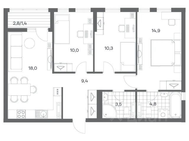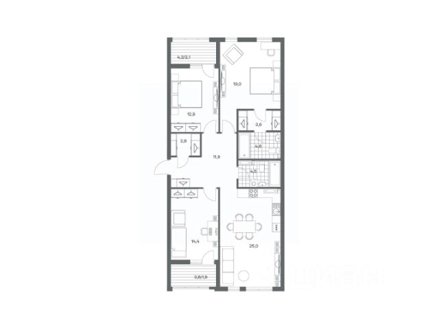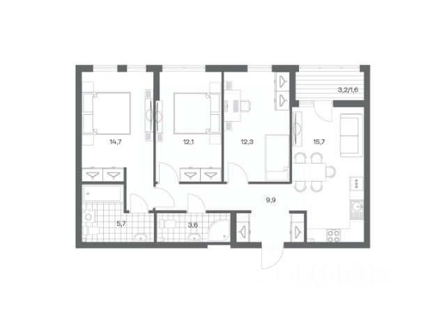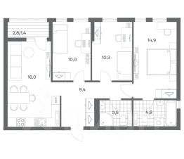 Продается квартира площадью 43.3 м² на 1 этаже 3 секции в Гагарина 30 от компании ГК "ТРЕСТ". Площадь кухни 18.2 м². Жилой комплекс комфорт-класса "Гагарина 30" расположен в Ленинградском районе Калининграда на улице Юрия Гагарина. Жилой комплекс включает в себя три корпуса высотой 9-18 этажей. Срок сдачи намечен на 1 квартал 2028 года. Жилой комплекс расположен в географическом центре города Калининград. Он знаменит Музеем янтаря, Королевскими воротами, Верхним и Нижним прудами, районами Альтштадт и Лебенихт. Из жилого квартала за 10 минут можно добраться до парков Тихий и Кальтхёфер. В жилом комплексе 457 квартир, из них 55% двух- и трёхкомнатные. Доступны варианты с просторными кухнями-гостиными, мастер-спальнями и кладовыми. На первых этажах расположены квартиры с приватными открытыми террасами. На верхних этажах лоджии с холодным остеклением, панорамными и увеличенными окнами. Высота потолков первого и последнего этажей - 3 м (кроме первого корпуса), остальных 2,72 м. Интерьеры МОП-ов выполнены в минималистичном стиле с контрастными, дополняющими друг друга материалами. Благодаря использованию светлых оттенков, природных текстур и декоративного освещения, пространство имеет большое количество света. В лифт-холле предусмотрена зона ожидания с мягкой мебелью. Почтовые ящики вынесены в тамбур, а рядом со стойкой домофона предусмотрена консоль для сумок. Дизайн-проект разработан студией Right design. Для удобства автомобилистов созданы подземные паркинги: на 125 машиномест и кладовые помещения. В паркинг можно будет спуститься на лифте комфортно людям, безопасно автомобилям! Продается квартира на улице Юрия Гагарина в городе Калининград.