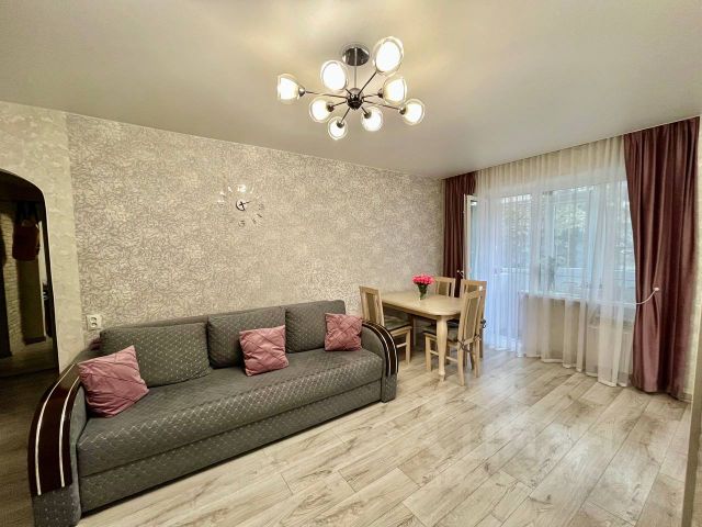 Комфорт: Ремонт сделан качественный, для себя, с душой и вкусом, в приятных любому глазу тонах. С/у совмещенный, с ванной, в плитке. Две комнаты смежные, из меньшей выход на застекленный стелопакетами балкон. Большая часть мебели, бытовой техники, элементов декора, текстиля останется новым хозяевам.