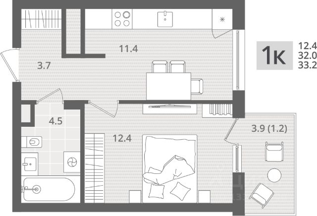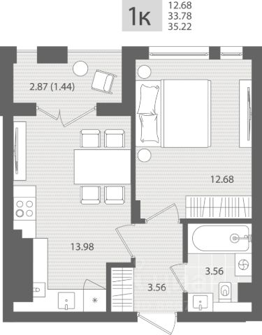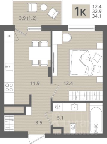Продаётся 1-комнатная квартира в строящемся доме (Дом 1.1), срок сдачи: IV-кв. 2026, общей площадью 34.1 кв.м., на 4 этаже. Новый жилой комплекс "МОре" от Строительной компании "Меркурий" расположен по адресу: Калининградская область, г. Пионерский, пос. Рыбное.