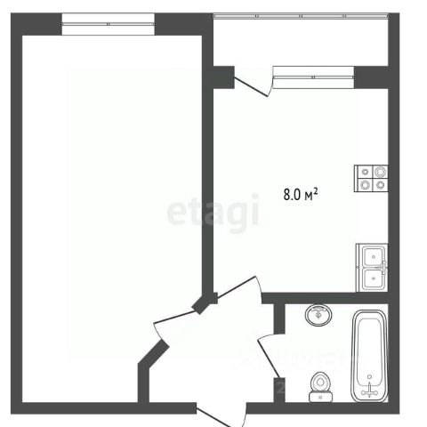 Общая площадь: 42,5 квм