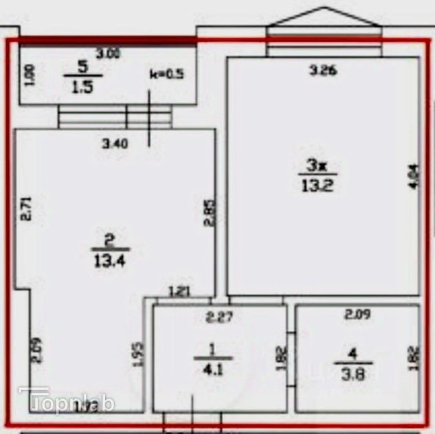- Общая площадь: 33,1 м² ( комната 17 м², кухня 12 м², санузел 4 м²)