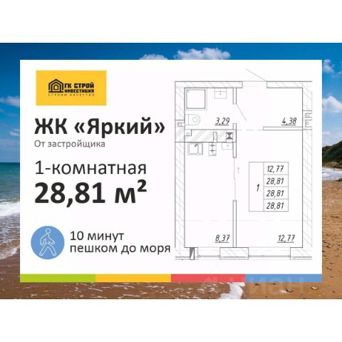 10 минут пешком до моря! Идеальная локация в развивающемся районе - вдали от городского шума и вблизи побережья. Семейная ипотека 4.6% для семей с одним или ДВУМЯ детьми Сельская ипотека 3% Рассрочка от застройщика 0% Продается уютная квартира комфорт-класса в новом малоэтажном ЖК "Яркий" у Балтийского моря, г. Зеленоградск. Прямая продажа от застройщика. 1-комн. квартира 1 этаж Особенности ЖК: 4-этажные дома с лифтами Удобные планировки Отделка "серый ключ" - коммуникации спрятаны, стены оштукатурены, полы залиты Высокое качество строительства и отделки (керамический блок, утепление, 5-камерные окна, металлические двери с тепло- и шумоизоляцией) Благоустроенная территория: детские площадки, зоны отдыха, озеленение Доступная среда Парковочные места для жителей и гостей комплекса Автономное газовое отопление, телевидение, интернет, панорамное остекление лоджий Возможна дистанционная демонстрация квартиры и заключение сделки. Квартиры: В продаже 1-комнатные и 2-комнатные квартиры, спроектированные с учетом современных стандартов комфорта и функциональности. Инфраструктура: ЖК "Яркий" располагается в поселке Малиновка живописном и развивающемся районе, в стороне от оживленных шоссе. Он привлекает внимание своим продуманным благоустройством: здесь есть детские площадки, зоны для отдыха и прогулок. В пешей доступности необходимые инфраструктурные объекты: магазины, кафе, паркинг, остановки транспорта. Комфортный чистый пляж! На территории ЖК также предусмотрены площади под различные организации. Прогулка до моря занимает не более 15 минут, а поездка до центра Зеленоградска всего 8 минут. До национального парка "Куршская коса" - 10 минут! Близко к морю и недалеко от Калининграда - отличный выбор для покупки недвижимости на побережье. ЖК "Яркий" - это место, идеально подходящее для жизни и отдыха у моря, а также выгодная инвестиция в будущее. Здесь начнется новая яркая глава вашей жизни! Позвоните или напишите нам, чтобы узнать все детали и записаться на просмотр. Подарки от застройщика: умный дом от Сбера! Комплект устройств для комфортной и безопасной жизни: датчики движения и протечек, умные лампы и другие девайсы. Узнайте больше в отделе продаж застройщика! Позвоните нам и мы с радостью ответим на все вопросы и запишем вас на просмотр квартиры. Продам квартиру в поселке Малиновка Зеленоградского района.