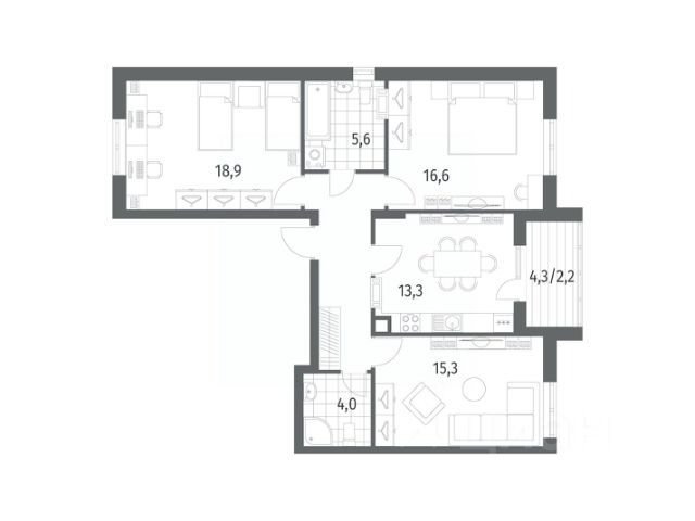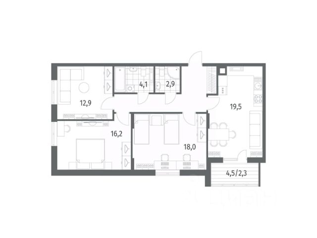Продается квартира площадью 87.8 м² на 3 этаже 1 секции в River Park от компании ГК "ТРЕСТ". Площадь кухни 19.5 м².