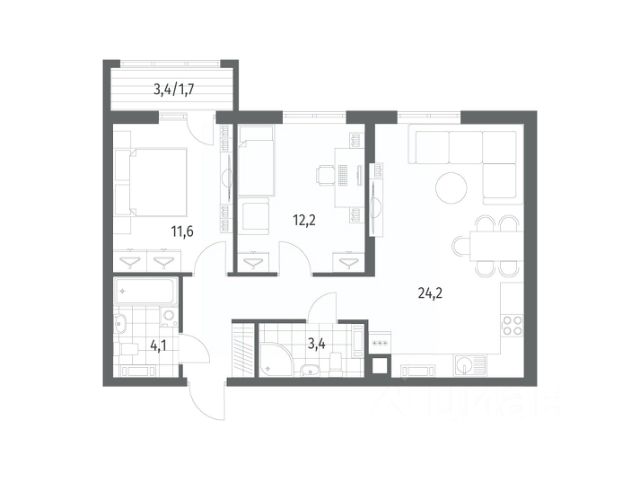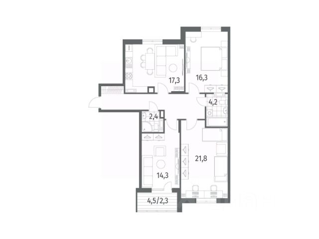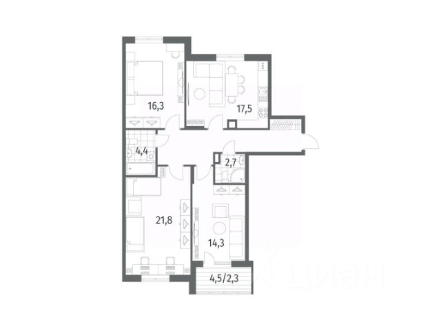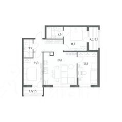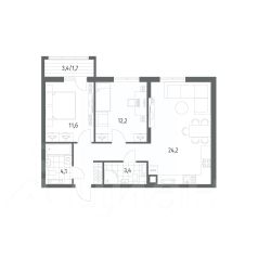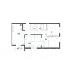 Продается квартира площадью 64.7 м² на 1 этаже 1 секции в River Park от компании ГК "ТРЕСТ". Площадь кухни 24.5 м².