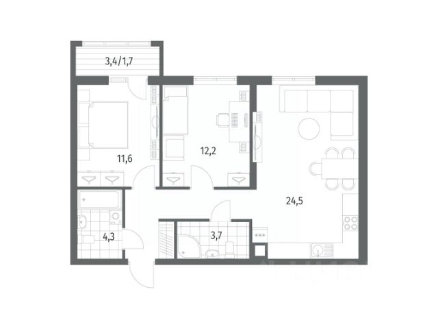 Продается квартира площадью 42.7 м² на 3 этаже 1 секции в River Park от компании ГК "ТРЕСТ". Площадь кухни 22.1 м².